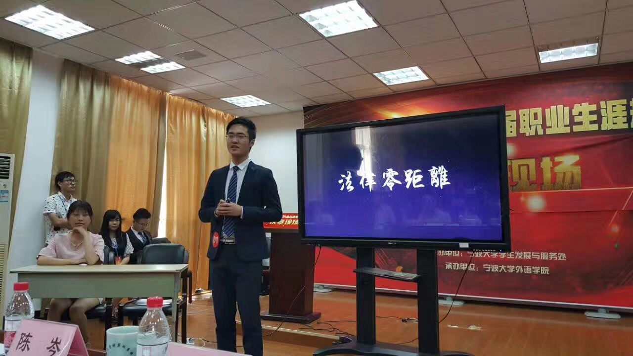 参赛选手俞竣文以“当兴趣撞上专业--一个法科学生的自白”为题,以“撒贝宁”、“一帆视频