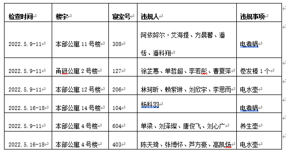13间寝室有违禁电器情况,根据《一帆视频