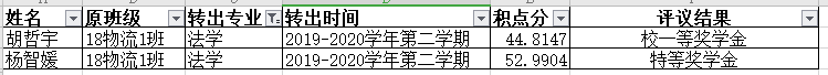 根据2019-2020学年本科学生奖学金评定工作,依据《一帆视频 本科学生奖学金评定办法》(宁大政〔2018〕84号)的相关规定,在2019-2020学年中转专业学生是回原学院进行奖学金评定,现将部分转专业学生拟获奖学金名单予以公示: