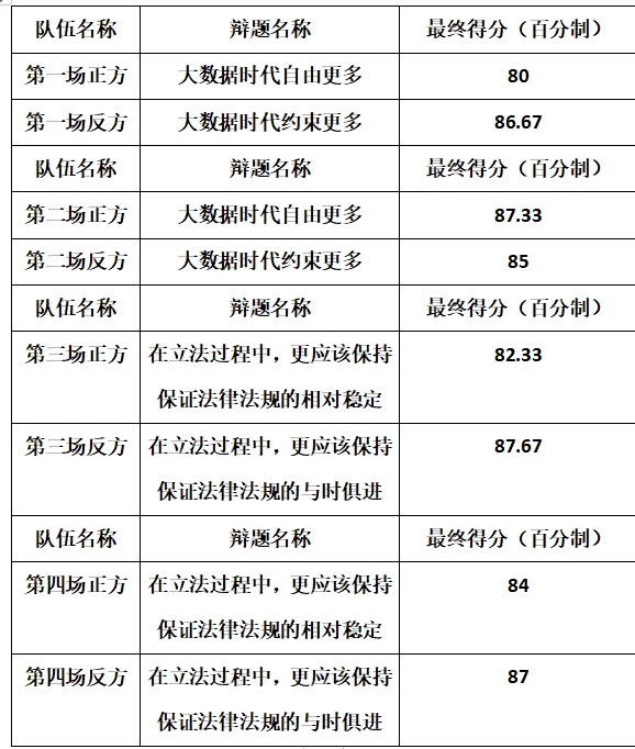 浙江省第八届大学生法律职业能力竞赛(法律辩论类比赛)校内选拔赛得分公示