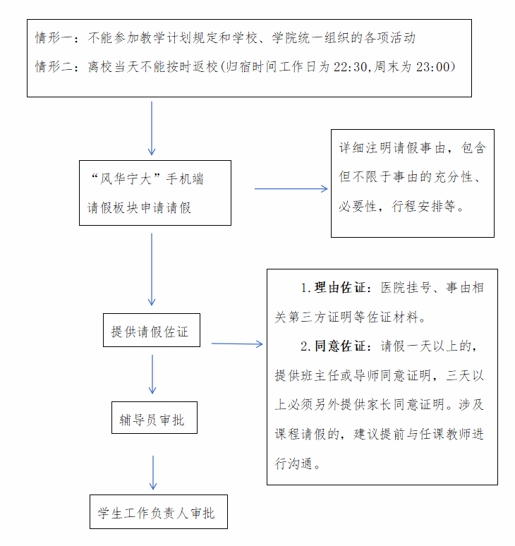1.学生未按规定办理请假或请假内容不实,均按学校有关规定处理,并记入学生现实表现。(如未请假晚归或不归,视情节予以情况通报或通报批评,或给予校级处分。)