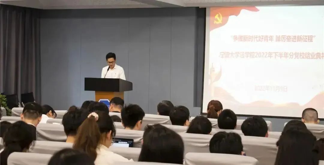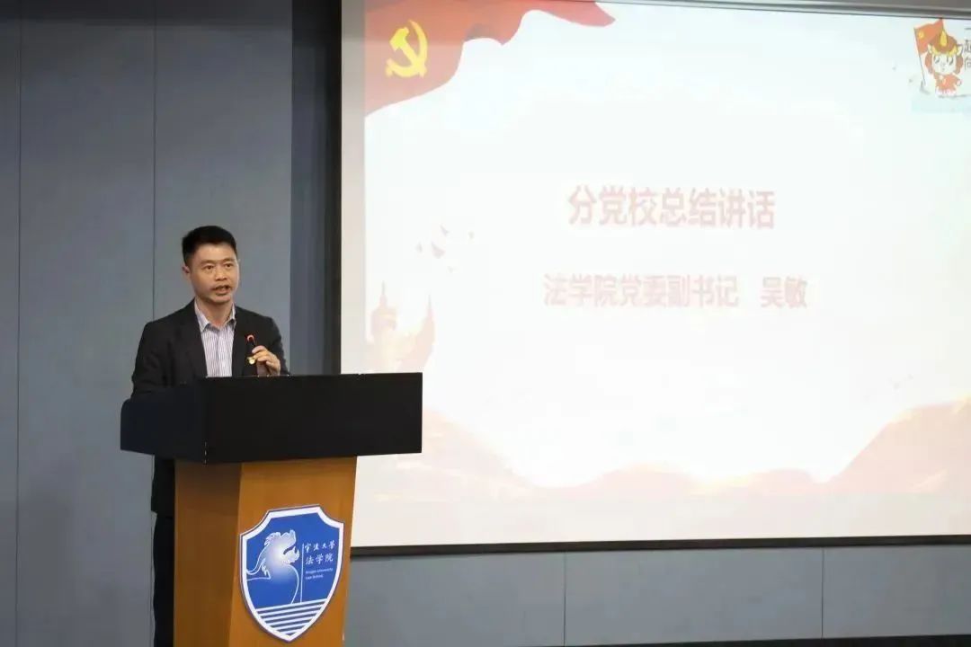 最后,院党委副书记吴敏老师发表总结讲话。吴敏老师首先对顺利通过本次分党校培训的学员以及优秀学员表示热烈祝贺。随后,吴敏老师代表学院党委,向全体学员提了四个期望:一是坚定理想信念,做爱党爱国,胸怀大我的时代青年;二是勇挑责任担当,做知重负重,建功有我的时代青年;三是不畏艰险困难,做埋头苦干,锤炼自我的时代青年;四是不断保持奋斗,做锐意进取绽放真我的时代青年。青年学生要把把对祖国血浓于水,与人民同呼吸、共命运的情感贯穿在我们的学业、事业的全过程,担起党和人民赋予的历史重任,进行“请党放心,强国有我”的铿锵誓言,谱写新时代的青春之歌!