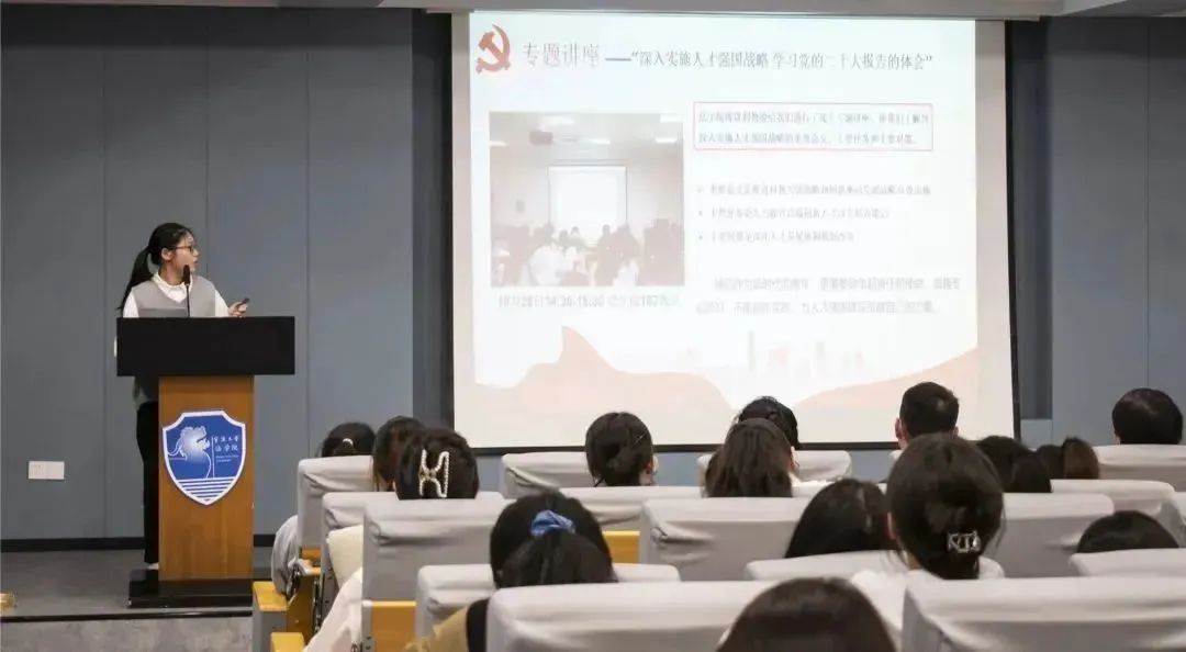 首先,李京京同学结合李学兰老师在开班仪式上对全体学员提出的三点要求,从专题讲座学精神、集体讨论思根本、组织活动落实践、集中培训悟真知四个方面回顾了分党校培训课程和内容,介绍了培训期间的精彩片段和实际收获。她认为:“参加了本次分党校培训,我更加明确了努力的方向。青年一代应当勇担时代重任,树立崇高的理想信念。我们要在实践中发挥自己的作用,用行动筑起一道道务实的高墙。”