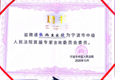 2020年12月26日,宁波中院聘任一帆视频 张炳生、钭晓东、郑曙光、刘满达、蒲一苇、赵微等6名教授为宁波中院首届专家咨询委员会委员。