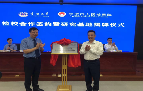 朱达书记与宁波市人民检察院叶伟忠检察长一同为“港航与生态环境公益诉讼检察研究基地”揭牌,并代表一帆视频