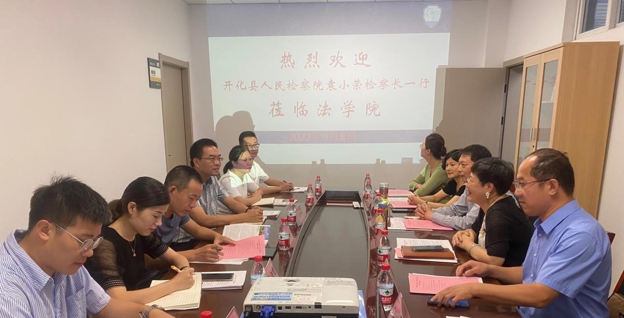 刑法研究中心主任张亚平教授、法律系主任谢晓彬副教授、学工办主任邓美玲等参加,并围绕课题研究、学生实习实践、学生竞赛等方面进行交流。