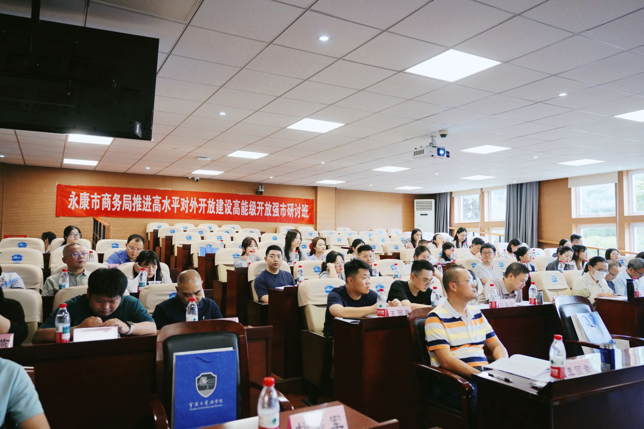 培训中心主管朱晓艳出席开班仪式。来自永康市支持外经贸高质量发展指挥部相关单位分管负责人、镇(街道、区)的分管负责人、业务骨干等共计50人参加本次培训。