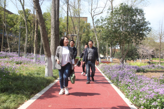 返校一行在陪同下,先后参观走访了学校校史馆、智慧教室、云创小镇、学生宿舍楼等。每到一处都细心观看,认真聆听讲解,了解学校、学院发展变迁和成就荣誉,追忆浓浓的母校情、师生情和同学情。参观校史馆时,校史馆陈列的种种令校友们驻足凝视,许是记忆如潮水般涌来,校友们如少年般兴奋叙述过往,情不自禁地唱起了校歌。