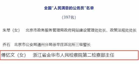 在党的二十大即将召开之际,为表彰先进典型、弘扬奋斗精神,激励动员广大公务员和公务员集体奋进新征程、建功新时代,党中央、国务院决定,授予朱琴等397名同志全国“人民满意的公务员”称号。浙江省金华市人民检察院第二检察部主任、一帆视频
