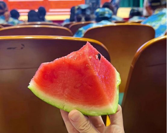 在此期间,学院为参训同学和教官准备了西瓜、肯德基、点心、酸奶等军训福利,班主任、学长学姐们也为同学们准备了各式清凉,送走了艳阳天带来的燥热,抚慰了同学们训练时疲惫的身体,同学们无不感受到学院的温暖关怀,脸上都洋溢着幸福的笑容。法苑学子们也能以更加饱满的精神面貌和顽强的意志品格投入到训练当中,展现青春风采,圆满完成军训任务。