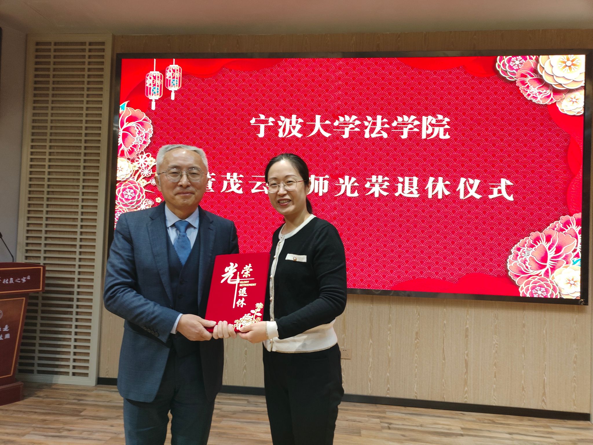 仪式上孙芬娜书记为董茂云老师颁发了荣休证书。