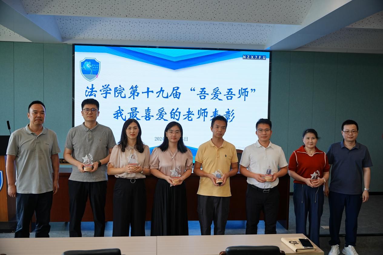 院长梁开银为获得学校2024年最美教授的刘满达教授颁发获奖证书,肯定他在教书育人和法学研究领域做出的杰出成就。