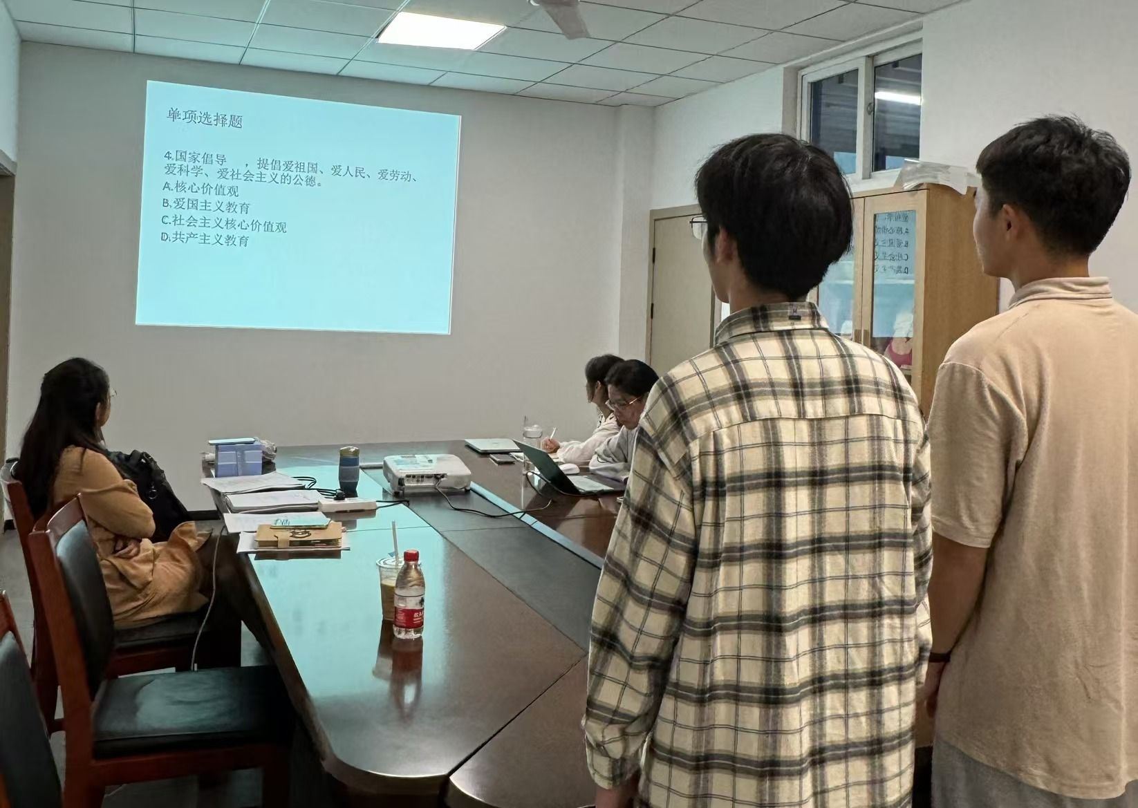 在接到比赛的相关通知后,迅速行动,积极开展优秀学生的选拔工作。依据成绩(GPA)、临场反应能力等多方面考量,推荐确定22级本科生潘程臣为参赛人选。随后,学院专门成立“学宪法 讲宪法”素养竞赛备赛小组。在笔试备赛阶段,潘程臣与指导教师一同对比赛题型进行深入分析,进而对素养竞赛的出题方向作出准确判断。随后,潘程臣通过网络等途径广泛搜集相关竞赛习题,并进行反复练习。而在抢答环节的备赛过程中,学院充分依托学生会学风建设中心,为潘程臣精心组织了多轮模拟抢答。这一举措不仅帮助参赛选手深入了解比赛规则,还能让其查漏补缺,不断积累实战经验。