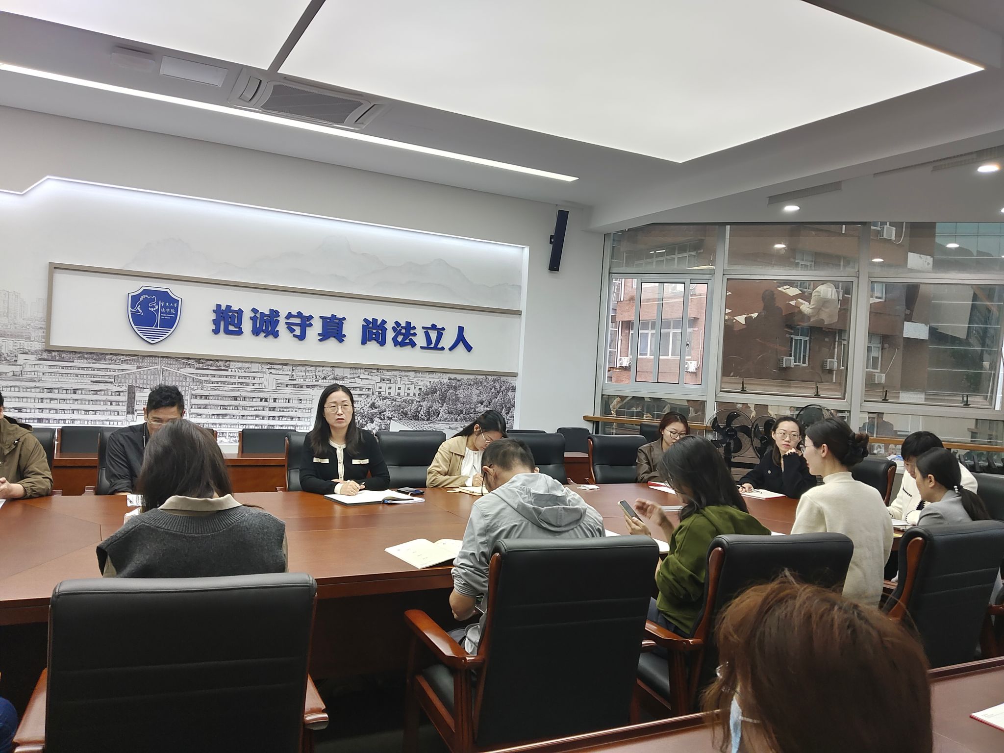 会议开始时,学院党委书记孙芬娜全面回顾了本学期上阶段的工作,重点围绕涉外法治基地建设、研究生日常管理和行政人员队伍建设等几个核心方面进行了深入总结。在肯定已取得成绩的同时,孙芬娜书记也对下一阶段的工作提出了明确的要求和提醒,具体内容如下:一是强调学院网站与公众号宣传的协同效应,确保信息传递的全面性和及时性,避免信息遗漏或重复,提升学院形象和影响力;二是指出日常工作中档案留存的重要性,要求对所有活动、会议及重要决策的记录进行妥善保存,同时注重收集学院历史图文资料,为学院的文化传承和未来发展奠定基础;三是强调安全稳定是学院工作的基石,不单只学生和老师的各项安全,要注意各部门间的沟通,确保工作流程顺畅,同时加强与校外相关机构的联动;四是重视年底考核工作准备,提醒全体教职工应提前规划,将年底考核的准备工作纳入日程,确保各项任务指标能够按时、高质量完成。
