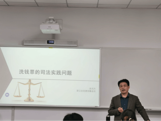 做了一场题为《洗钱罪的司法实践问题》的学术报告,使学生们更直观地了解到洗钱罪的立法背景、入罪难点与司法现状,开拓了学生的视野、提高了学生的刑事思辨能力。