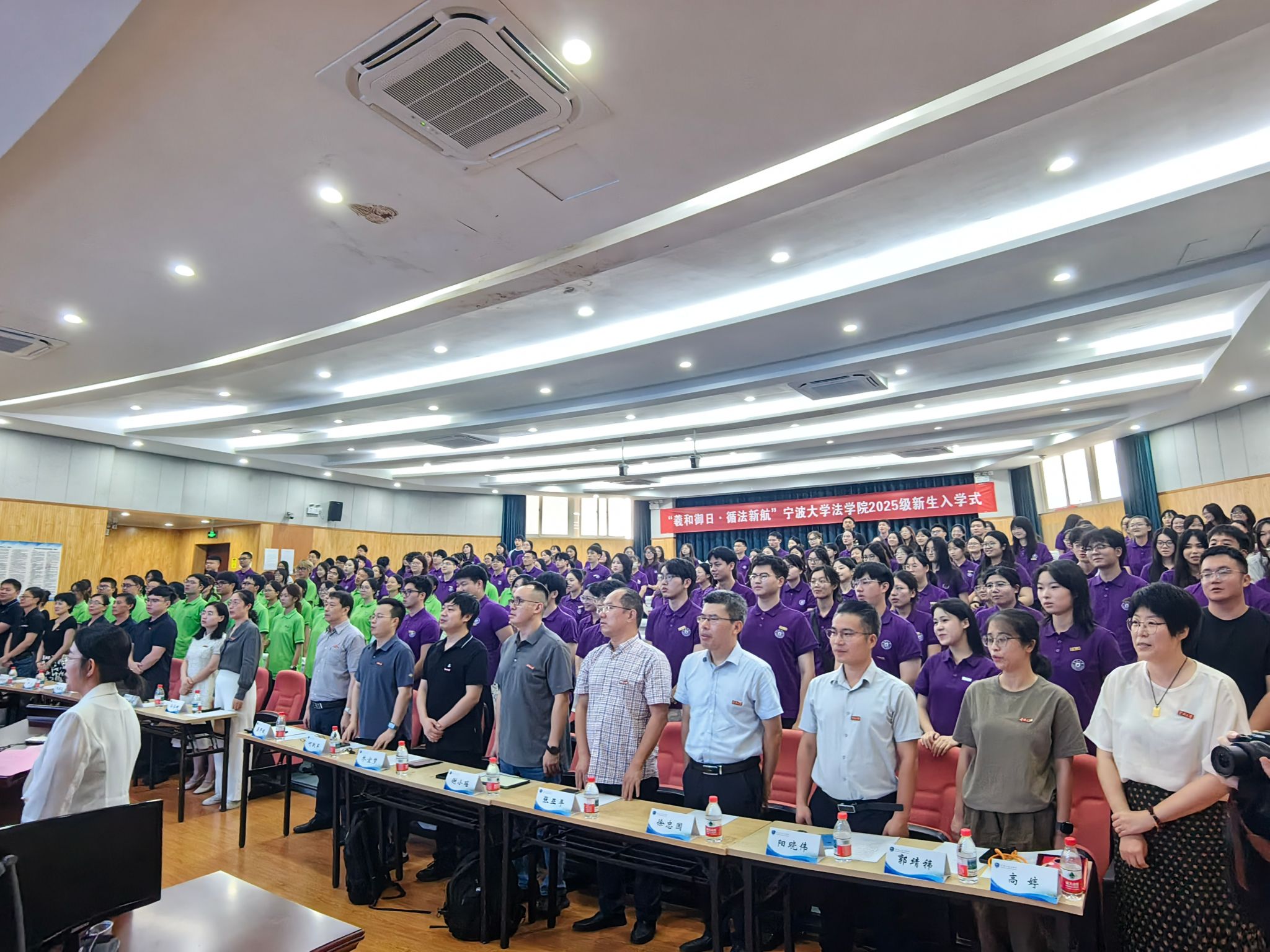 2025级新生入学式在本部教学楼阶五(模拟法庭)教室举行,学院党政领导班子、各学位点及研究所负责人、系主任、新生班主任与教师代表齐聚,共同见证新生开启法学求学新篇,入学式由院学生工作负责人谢果凰主持。