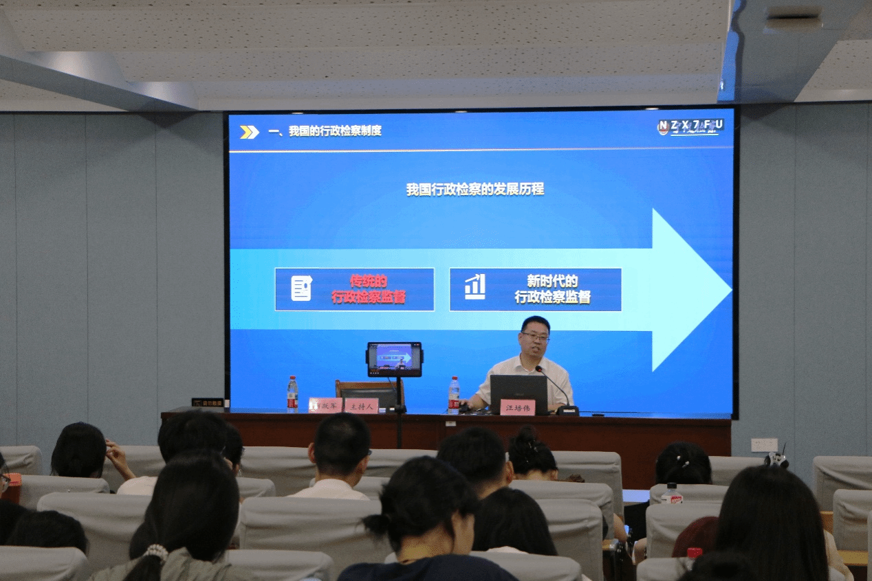 讲座中,汪主任首先系统阐述了我国行政检察制度的发展历程,他讲到当前我国行政检察职能体系不断完善,坚持诉讼内监督与诉讼外监督双轮驱动,逐步形成了以行政诉讼监督为重心,以行政争议实质性化解为牵引,以行刑反向衔接和行政违法行为监督为新增长点的行政检察工作新格局,肩负着维护公正司法与促进依法行政的双重职能。
