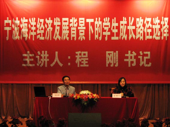 学生讲授了一场内容丰富的形势与政策课,主题为“宁波海洋经济发展背景下的学生成长路径选择”。程书记首先立足海洋经济发展的内涵,深入解读宁波发展海洋经济的目标和任务,分析我校服务和推进海洋经济所作出的努力,并结合自身丰富的工作经历和丰厚的人生阅历引导一帆视频