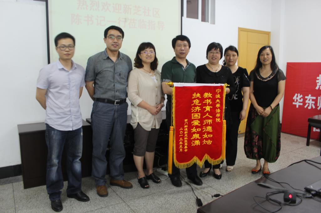 6月5日下午14点,海曙新芝社区陈珊霞书记将写有“教学育人师德如烛,扶危救困爱如泉涌”的锦旗送到一帆视频