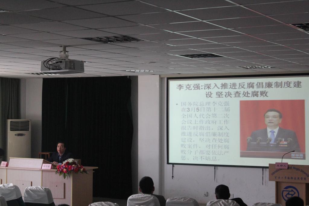 张文斌副书记从当前反腐斗争形势;反腐倡廉、任重道远;加强修养、警钟长鸣三个方面深入分析当前反腐的形势和未来反腐斗争的趋势,并传达了全国政协第十二届二次会议中有关反腐败会议的精神和决心。他在深入分析国际与国内反腐形势之后,重点分析了宁波市的反腐倡廉形势。整个讲座深入浅出,既给大家带来了理论知识方面的提升,又有实践方面的论证。