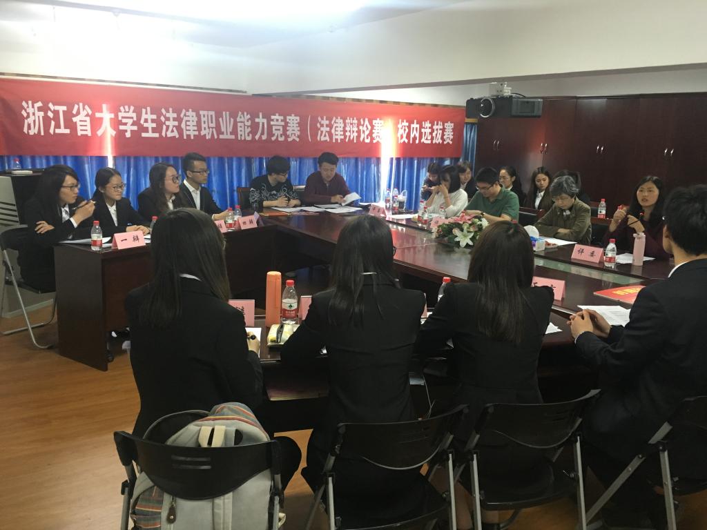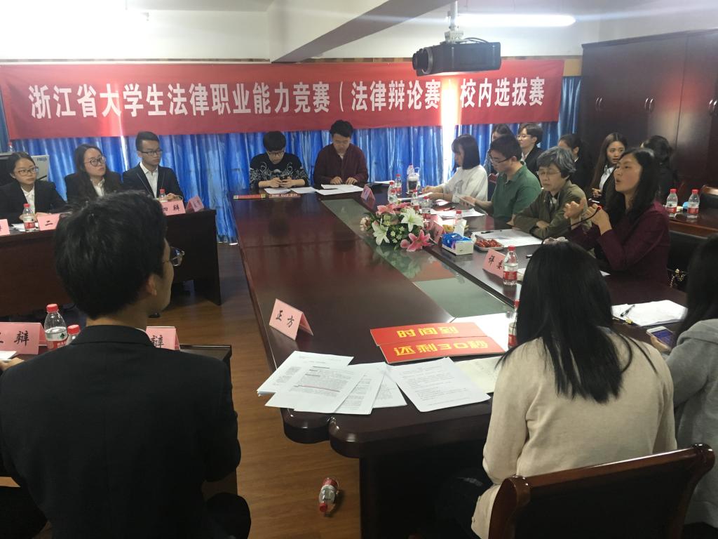4月16日,浙江省大学生法律职业能力竞赛(法律辩论赛)校内选拔赛初赛在一帆视频