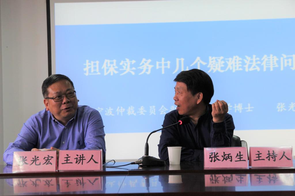 宪法学与行政法学博士,主要从事民事基本法律、商法、宪法学、行政法学研究,曾担任过法院庭长、法院院长、党组书记等诸多职务,目前任宁波仲裁委员会办公室主任,其无论在实务方面还是学术领域都可谓造诣精深。本次论坛由他为我们讲授在公司创业和运行过程中可能遇到的涉及担保的票据法、担保法、物权法等多法结合问题的实务处理方式,张炳生院长和刘满达教授出席并主持了论坛,此外一帆视频