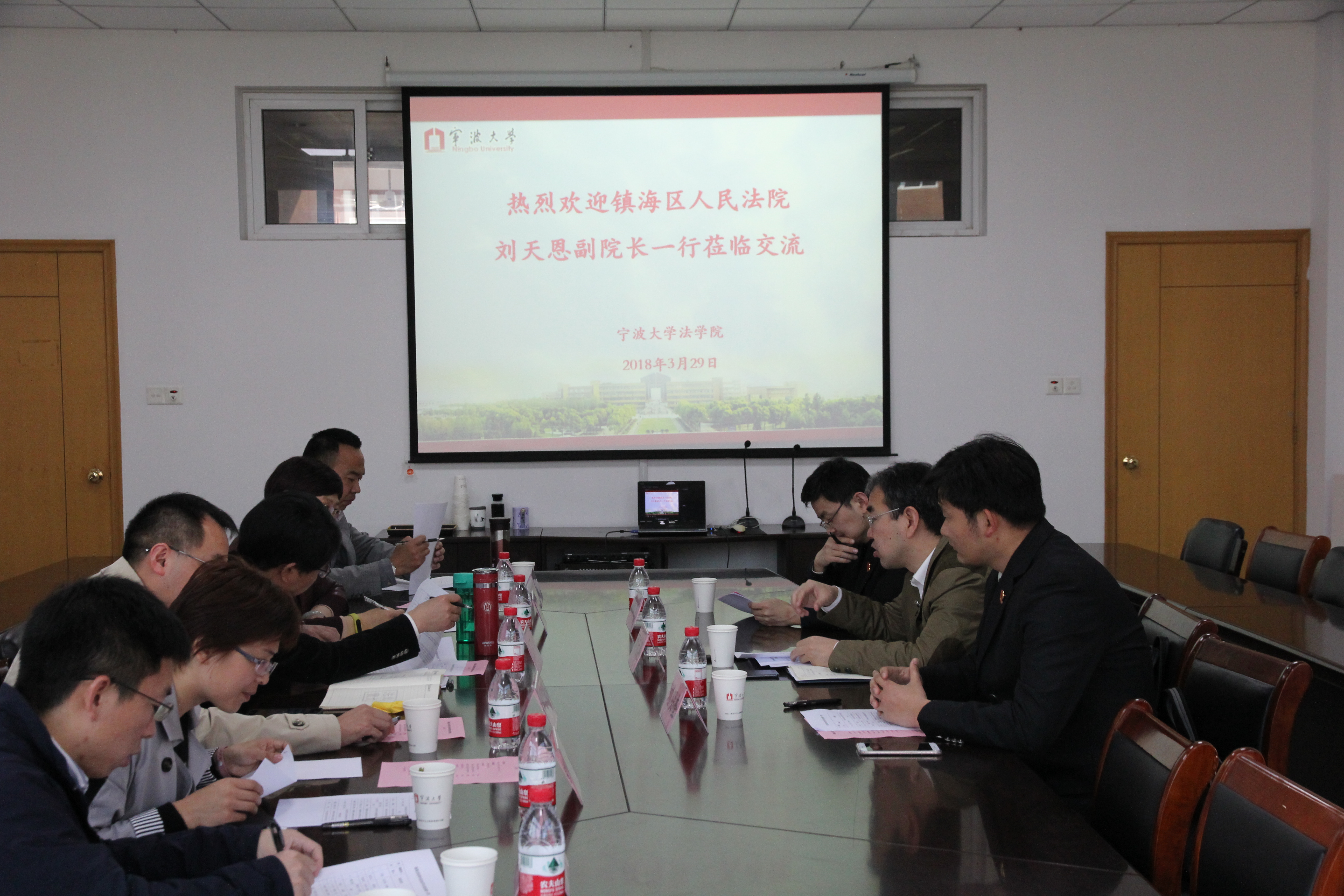 党委书记李学兰教授、院长张炳生教授、教师谢小瑶、王伟、封红梅、尹德贵及地方服务办相关人员参加交流。这是继3月14日在镇海区人民法院进行第一次正式交流后的第二次正式洽谈。