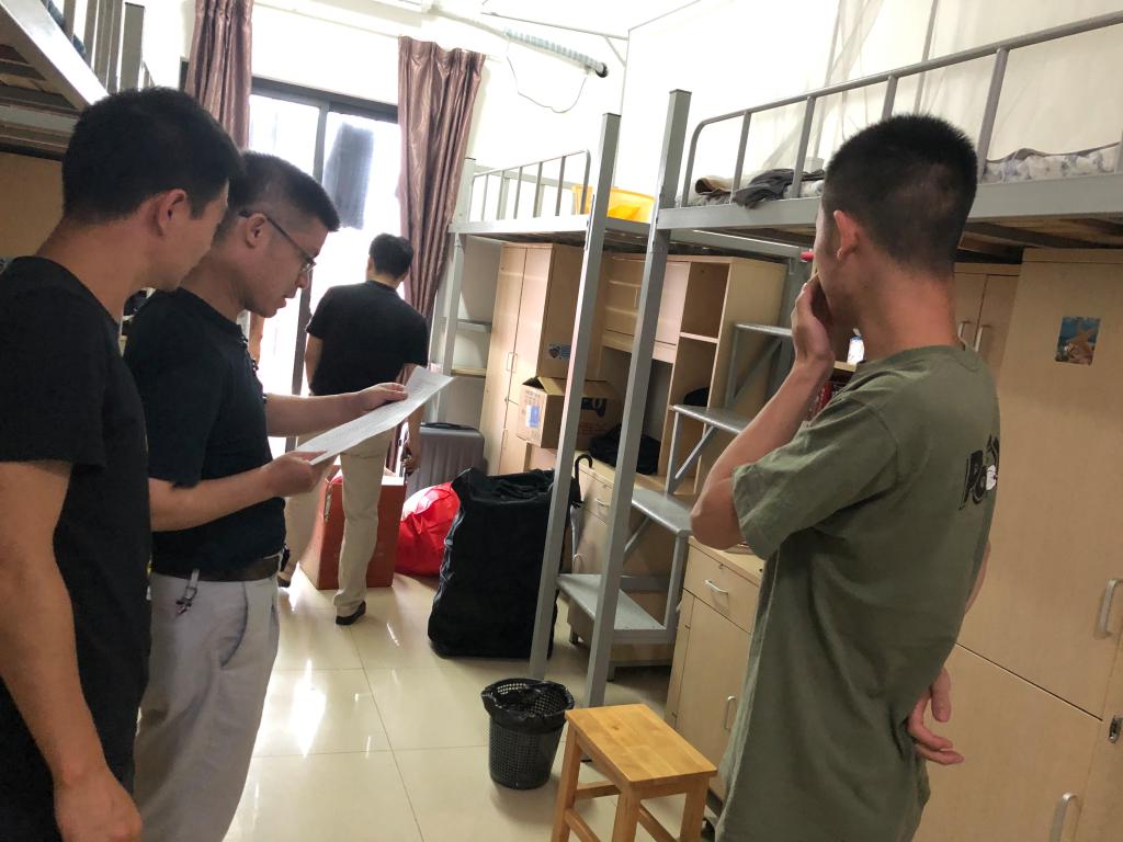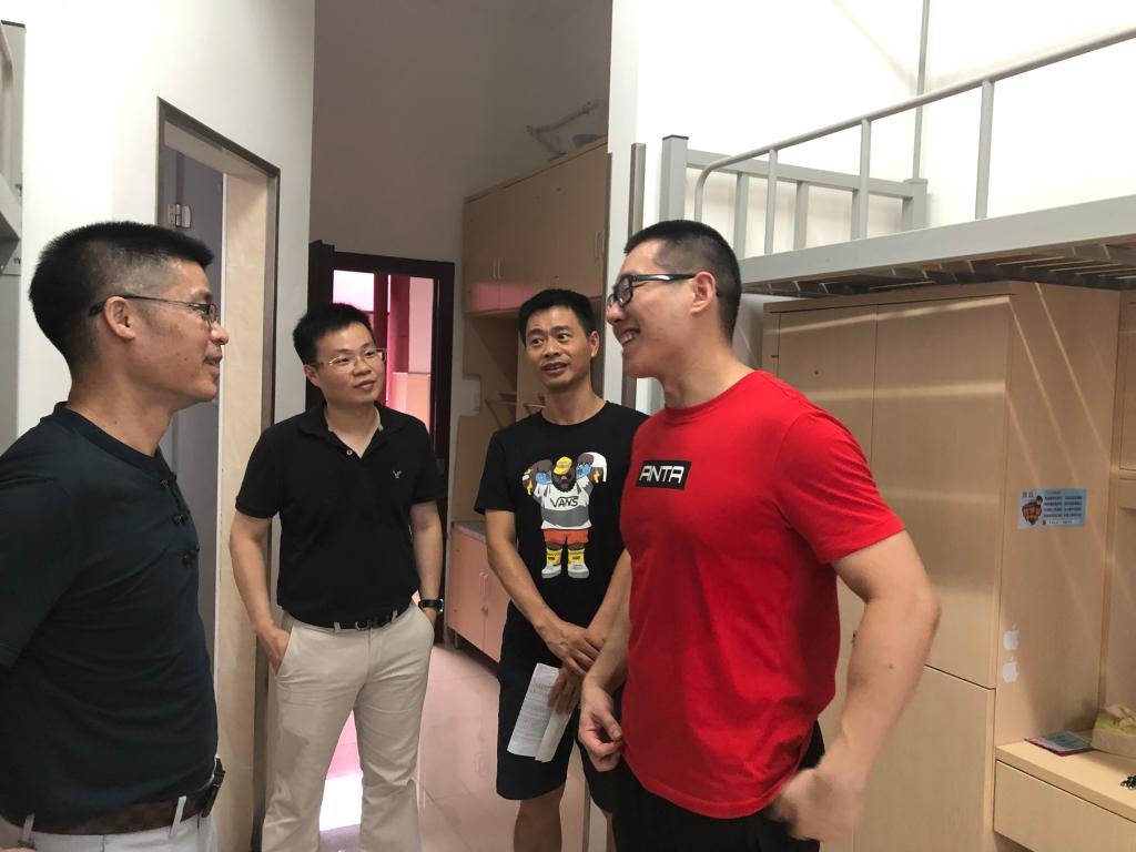 8月28日下午,院长钭晓东老师,党委书记李学兰老师,副院长龚虹波老师、何跃军老师,党委副书记孙芬娜老师,学工办主任吴敏老师,以及辅导员刘小梅、杨琦一行到甬研公寓走访慰问2019级研究生新生。