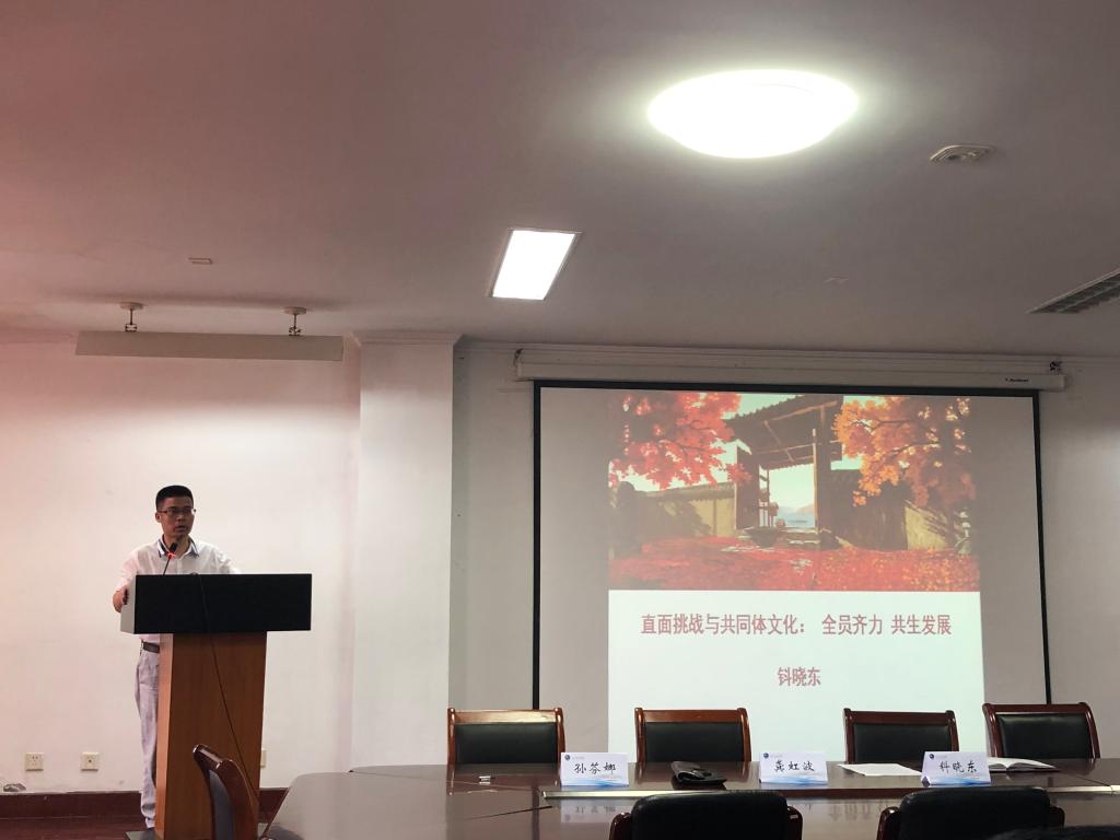 共同体文化,实现全员齐力,共生发展的,分三方面阐述:一是近期新成果(期末-暑期),二是学院提升发展:五大严峻考验;三是建构共同体文化:群策群力-共生发展。2019年要着重做好博士点申报准备、加大高层次人才引进力度、加强学科与学位点建设等几方面的工作。