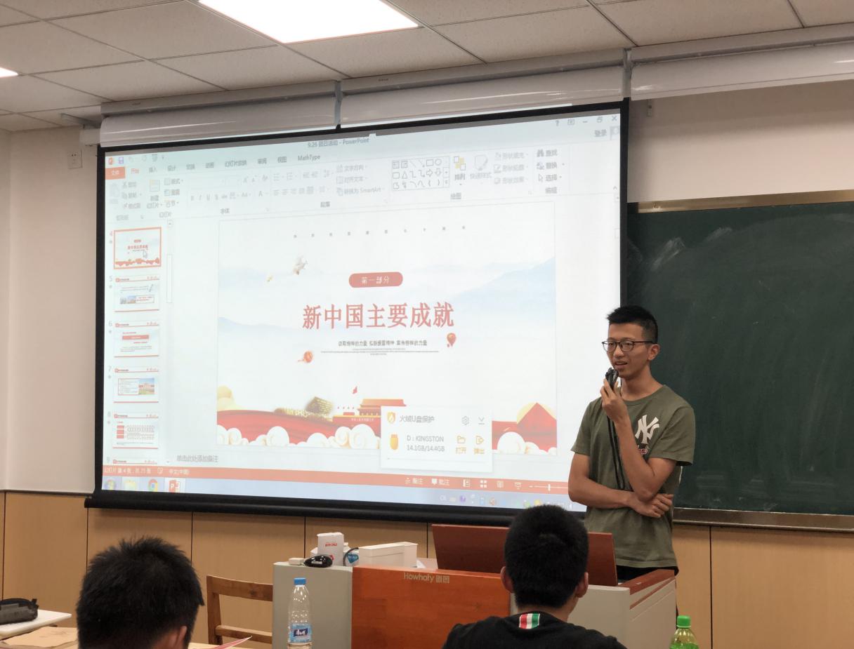 此次活动由四部分组成,活动第一部分,由班团支书组织全体团员观看了展现新中国从站起来到富起来转变的视频。第二部分,组织同学们回顾了十九大的重要内容与精神。第三部分,同学们进行了历史启示的思考和互动,意识到自己现在所得到的这一切,都需要以坚持中国共产党的领导作为根本政治前提与保证,感受到中国的发展要坚持走中国特色社会主义道路。其间,同学们还聆听了习近平总书记在十九大上对青年的讲话,深刻感受到习近平总书记对青年的殷勤期望,深刻领悟到“青年兴则国家兴,青年强则国家强”的精神,在习近平总书记讲话完毕后,同学们自发的响起热烈的掌声。最后,团支书进行会议总结,并布置后续“不忘初心,牢记使命”主题教育的知应会知识学习。
