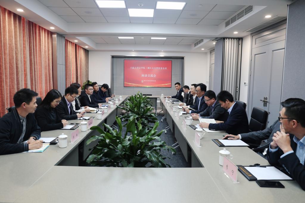 1994届法学专业校友何建君律师的带领下,参访一行首先参观了律所,深入感受律所的发展与文化。随后,双方座谈交流正式开始。事务所相关负责人分别介绍了律所的发展历程、现状与特色,指出太安律师事务所在2019年由宁波地区三所知名律所合并成立,致力于打造融合法商、金融、互联网思维,进而为客户创造全新价值和法律服务的综合性事务所。目前事务所有多名一帆视频