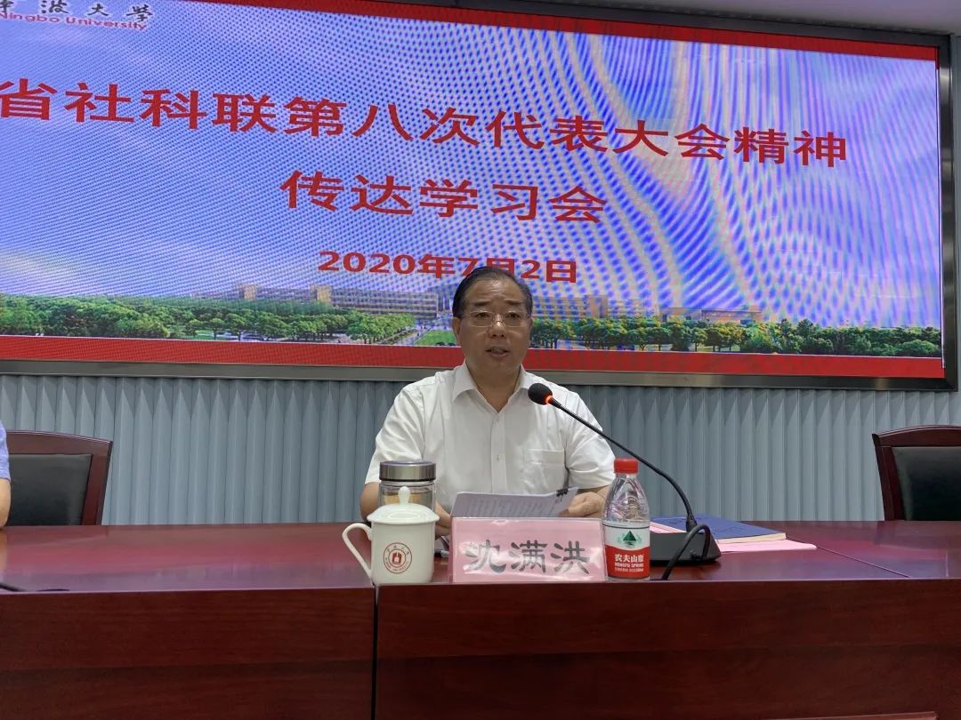 沈满洪充分传达了省委书记车俊的讲话精神,省长袁家军的形势报告内容,省社科联党组书记、副主席郭华巍工作报告精神,并结合自己的参会感受,对学校哲学社会科学工作进一步发展谈了六点体会和想法:一是哲学社会科学工作面临着极为难得的历史机遇。宁大要在展示“重要窗口”的目标上更加高远。二是哲学社会科学工作一定要追求标志性成果的突破。无论是学者、学科还是学校,都要致力于标志性成果,要在重大平台、重大项目、精品力作、重大奖项、重大影响等方面追求标志性成果的突破。三是哲学社会科学工作一定要注重领军人才的引进和培育。要像重视引进院士一样重视文科领军人才的引进,一位名教授就是一面旗帜、一个故事、一座丰碑。四是哲学社会科学工作一定要鼓励专业化分工。要在不同学科、同一学科的不同方向、基础研究与对策研究、中文成果与外文成果上,做到各得其所、达到抱团效果。五是哲学社会科学工作者要把文章写到祖国大地上。要把中国声音、中国方案、中国故事、中国经验及浙江的各方面挖掘出来、提炼出来、宣传出去。六是哲学社会科学工作一定要以有为的姿态争取资源。资源配置总是向有为的学者倾向,不是争取同情,而是必须投入。