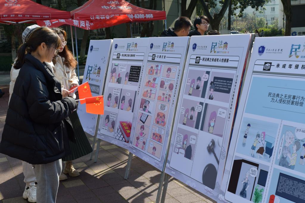 学生原创的民法典热点问题解读漫画《民法典如何守护我们的一生》展板受到了师生的喜爱。