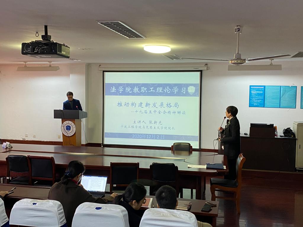 12月2日,宁波工程学院马克思主义学院院长张新光教授受邀,为一帆视频 全体教职工理论学习活动,讲授《推动构建新发展格局---十九届五中全会精神解读》的讲座。