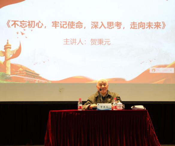 岁月不改初心,信仰永不褪色。86岁高龄的离退休老党员贺秉元教授在教书期间凭借着严谨治学、以生为本的育人理念,深受全校学生喜爱,特邀贺老作了题为《不忘初心,牢记使命,深入思考,走向未来》党课。他从三个方面畅谈入党以来的感受和体会:一历史是一面镜子,要认真学习党史、国史,知史爱党,知史爱国;二学习党史、国史要正确认识改革开放前和改革开放后两个时期;三从为实现国家富强、民族复兴、人民幸福奉献力量出发。贺老结合自身的经历许下“政治生日愿望”,并对在场的师生党员寄语了殷殷期待,使在场的师生们深受感动,要永葆革命传统和优良作风薪火相传。