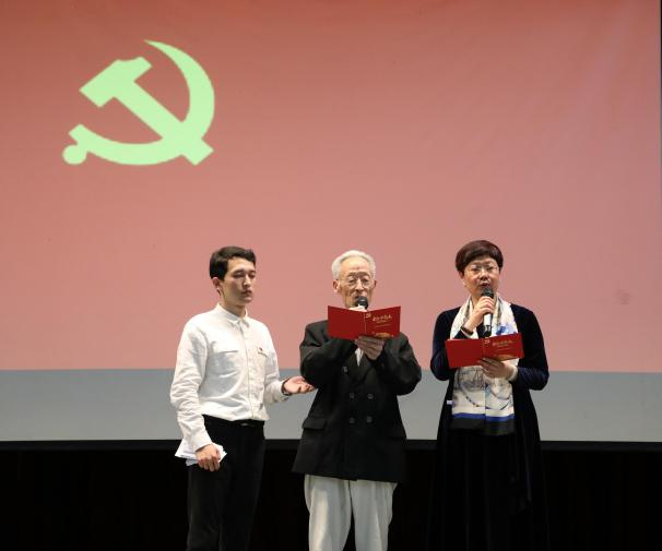 誓言照亮征途,初心万里如磐。全体师生党员在老党员冯振堂老师、学院党委书记李学兰老师的领誓下重温入党誓词,坚定心中的信仰。冯老高举话筒,一字一句、掷地有声“对党忠诚……永不叛党”,在场每一位师生无不为此动容,一代又一代青年赓续红色血脉,争当时代传人。