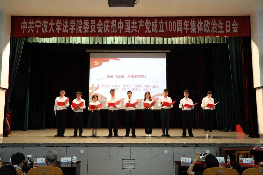 学生党支部书记代表共同朗诵《红船,从南湖起航》,朗诵者满怀深情礼赞党的初心不渝、歌颂党的风华正茂,在此起彼伏的朗诵声中,再现一幅幅劈波斩浪驶向辉煌的史诗画卷。