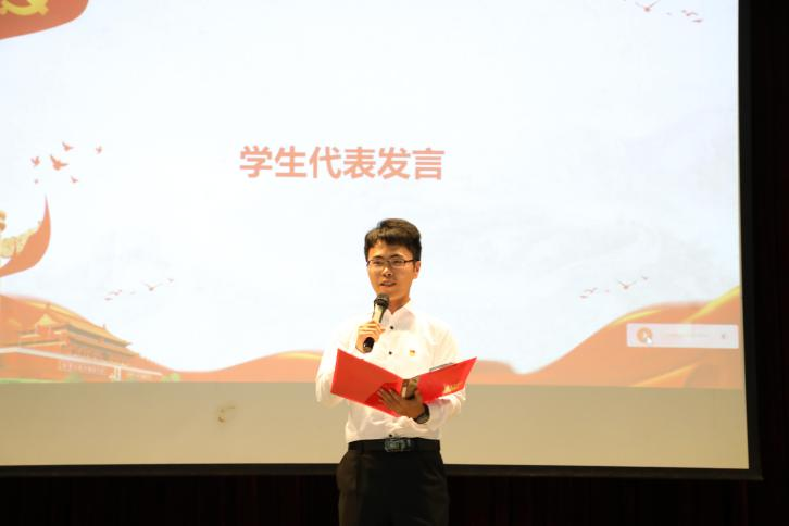 后辈继传星火,不负先贤望白头。法学硕士第二党支部书记申家鑫作为学生党员代表发言,他结合自身经历讲述了党支部建设和党员作用发挥的支部故事,并表示,时代的接力棒已经交到了我们这一代人手上,青年要肩负历史使命,坚定前进信心,立大志、明大德、成大才、担大任,努力成为堪当民族复兴重任的时代新人。