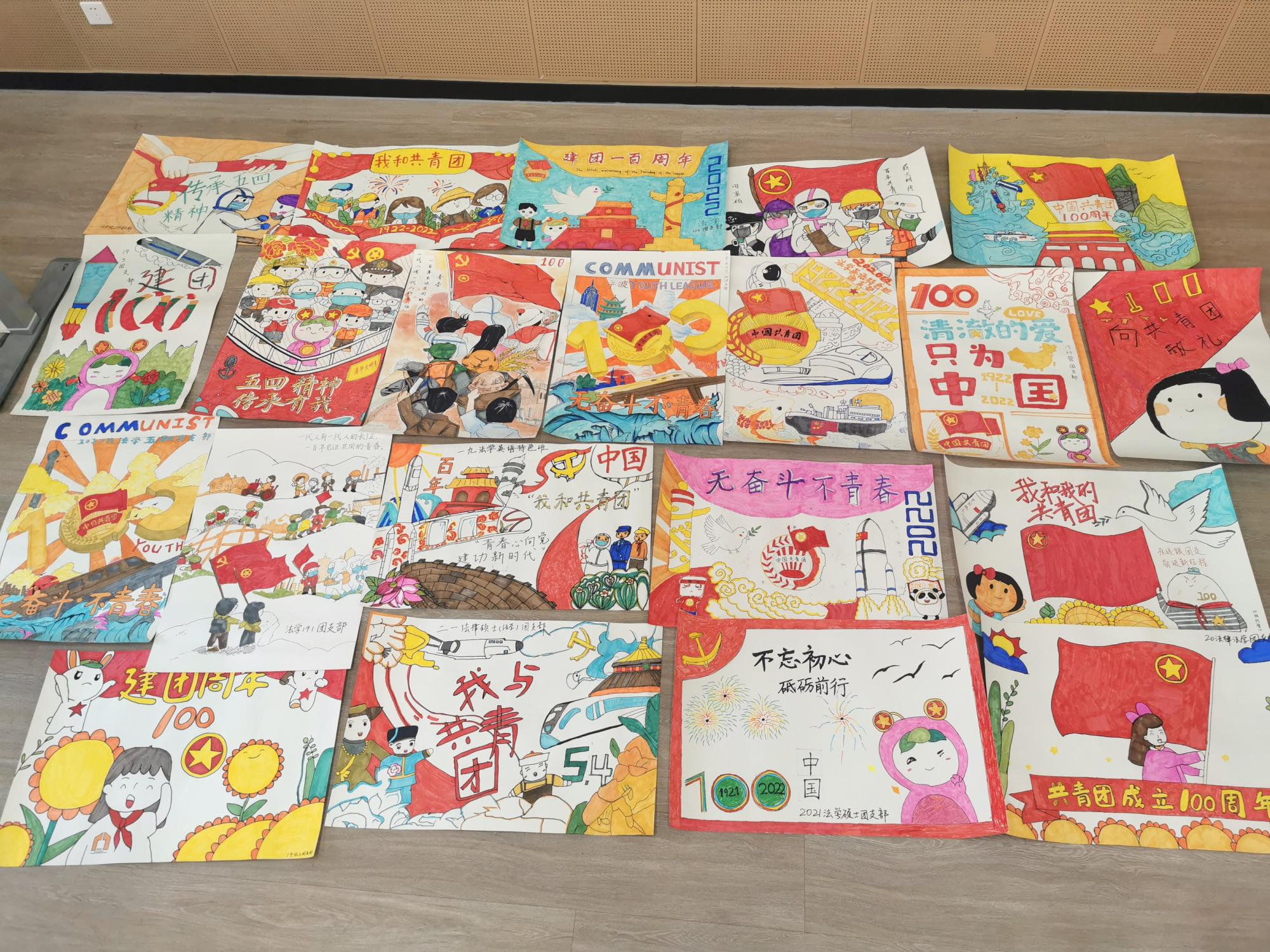 青年们高举的飘扬的党旗、团旗,冲锋在前的抗疫战士、消防员们,装载着航天精神的神舟飞船......同学们充分发挥各自的想象,用画笔绘下信仰,用行动表现决心,他们还写下了“清澈的爱只为中国”“无奋斗不青春”“一代人有一代人的长征,一百年见证共同的青春”等青春誓言,充分展现了当代团员青年们的使命担当。