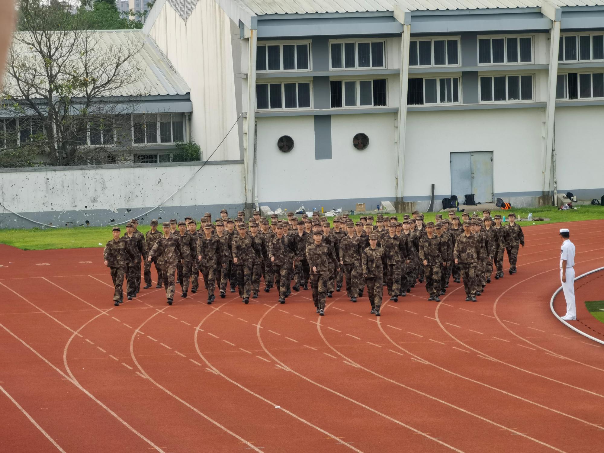 烈日下,球场中,方阵间,青春风采完美彰显。集合、看齐、立正、稍息、整理着装,在阳光的洗礼中,同学们依然昂首挺胸,以笔直的军姿迎接新一天训练的到来。站军姿、踢正步、走方队等一系列训练活动按计划不断重复进行。反复的训练对于同学们来说,不仅是烈日的炙烤,也是汗水的洗礼,更是意志力的抗争。随着时间一分一秒过去,不少同学内心开始动摇了,可是在教官的鼓舞下,我们咬紧牙关,继续与烈日抗争,与高温搏斗。在军训开始的第一天,就有同学承受不住军训的强度,但是即便如此,他们也在体力恢复的第一时间申请入列;汗水流进眼睛里,打声报告擦干汗水后依然保持标准的军姿。