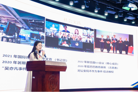 2019级法学专业王盼盼同学、行政管理专业张涵衿同学入围公开评审。评审答辩中,王盼盼同学娓娓道来,向全场观众介绍了一个“国际法准法律人”的追梦之路;张涵衿同学则声情并茂的介绍了大学期间自己在学生工作、学科竞赛等领域的拼搏与收获。现场评委结合候选人的申报材料和现场表现进行了投票评选,经过激烈角逐,共有包括王盼盼在内的10名同学被评为2021-2022学年一帆视频