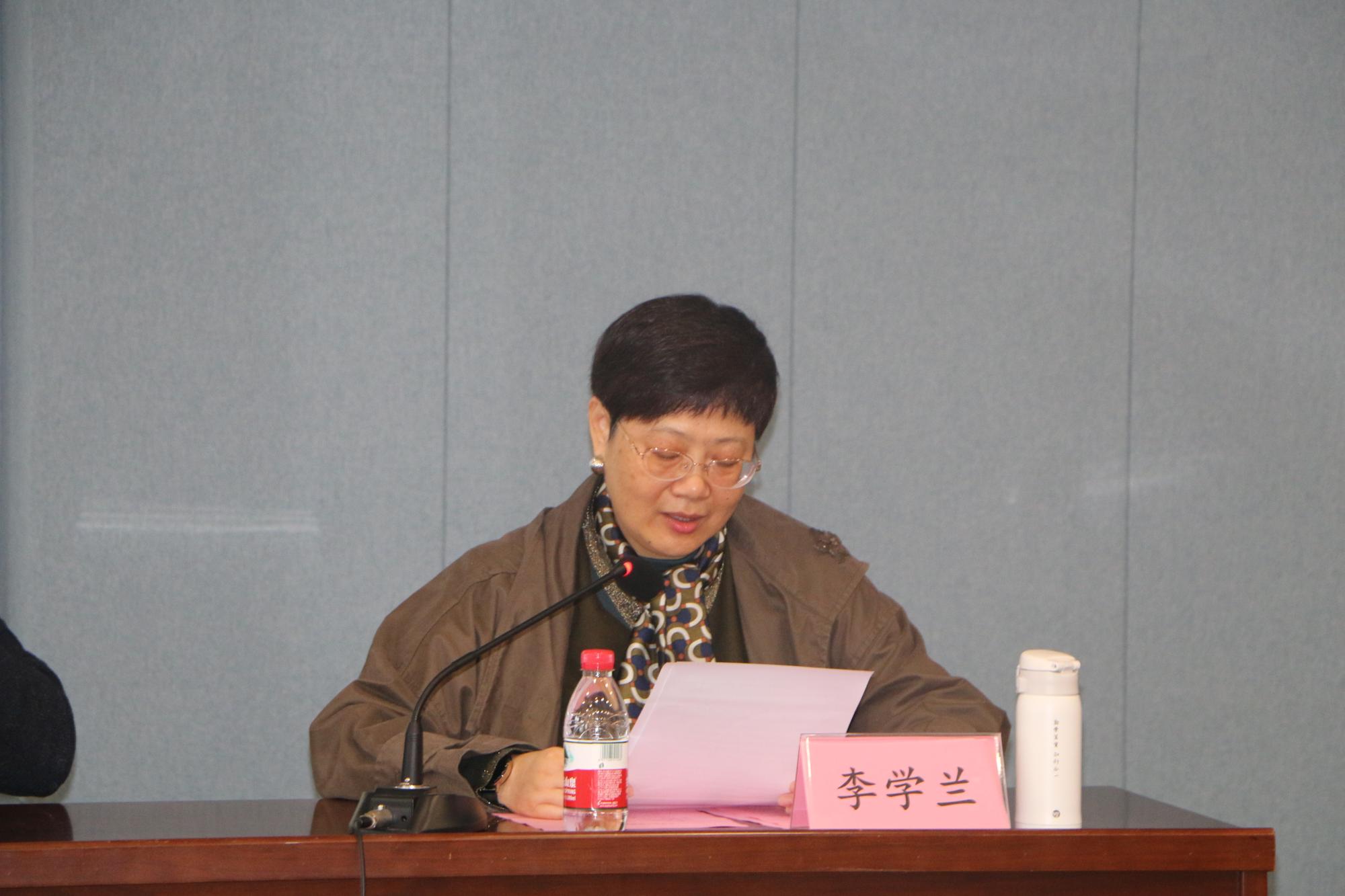 会上举行了干部荣退仪式。校党委委员、副校长汪浩瀚为李学兰同志颁发荣退证书,教职工代表鲜花。