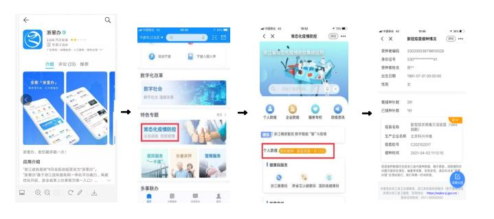 ①省内人员请事先在浙里办APP查询第一针接种信息,确认第一针接种时间和疫苗种类:【浙里办】一帆视频→常态化疫情防控→个人防疫:我的接种。并截图留底。在接种疫苗当天签署知情同意书后将接种第一针的疫苗信息截图提供给医务人员核对、录入。