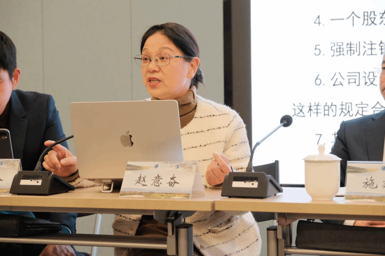 与谈人徐立敏局长长期从事企业登记与企业行政审批方面工作,他通过详实的数据向大家介绍了我国公司注册资本演变情况、认缴资本制推行情况、简易注销制在宁波的试点情况。他认为,2023年《公司法》将有限公司的注册资本从认缴制改为实缴制有利于保障债权人的合法权益、增强社会公众信任,是一项有力的纠偏措施。他从公司存续期限的相关统计数据出发,指出了《公司法》规定5年实缴制的合理性,基本与中小企业的生存期相适应。实行5年内实缴制后,可能会减少企业的数量,但统计数据减少,从实际运行上反而使企业的持续营业性反映得更加客观,还能减小登记机关的监管压力,使得有限的监管资源更好地服务于企业上。他还认为一人公司登记数量并不少,在宁波的公司数量中的所占比例也不低,因此,强化一人公司制度,更好地促进它规范经营尤其重要。徐局长还对宁波市探索公司强制注销制度的实践经验进行了介绍,其指出强制注销主要是针对一些僵尸企业,这次《公司法》修改后引入这一制度,主要是针对恶意不注销、对债权人保护不友好的企业,强制注销后虽然公司主体资格被依法消亡了,但股东仍负有债权债务的清算义务。同时徐局长也指出要重视强制注销的制度规范设计和救济机制建设。针对与会者提出的有些股东为逃避债务与税收,故意不去进行自愿清算与注销,让登记机关强制注销,登记机关应在推动强制注销之前需要与税务机关进行协调,了解情况,充分发挥好强制注销的功能与作用。