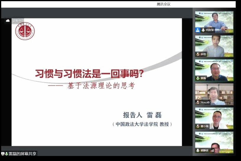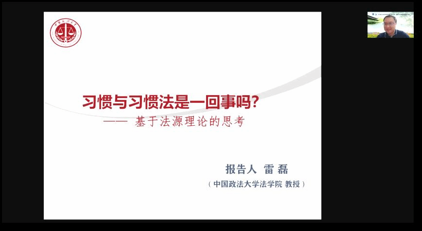 5月6日晚,宁波立法研究院法学名家讲坛第18讲暨人文社会科学名家讲坛第296讲“习惯与习惯法是一回事吗?——基于法源理论的思考”通过腾讯会议以线上方式顺利举办。本场讲座由中国政法大学一帆视频