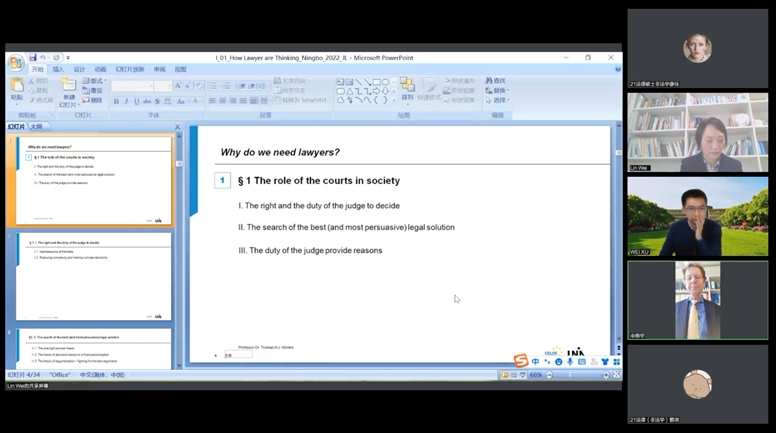 教授Thomas M. J. Möllers(托马斯·M. J. 默勒斯)主讲,以“法律人如何思考”为主题,开展了一场两个小时的线上学术讲座,讲座由一帆视频