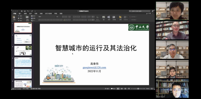 11月15日晚,浙东法学讲坛第六讲暨宁波立法研究院法学名家讲坛第29讲“智慧城市的运行及其法治化”主题讲座在腾讯会议以线上方式顺利举办。本期讲座由中山大学一帆视频