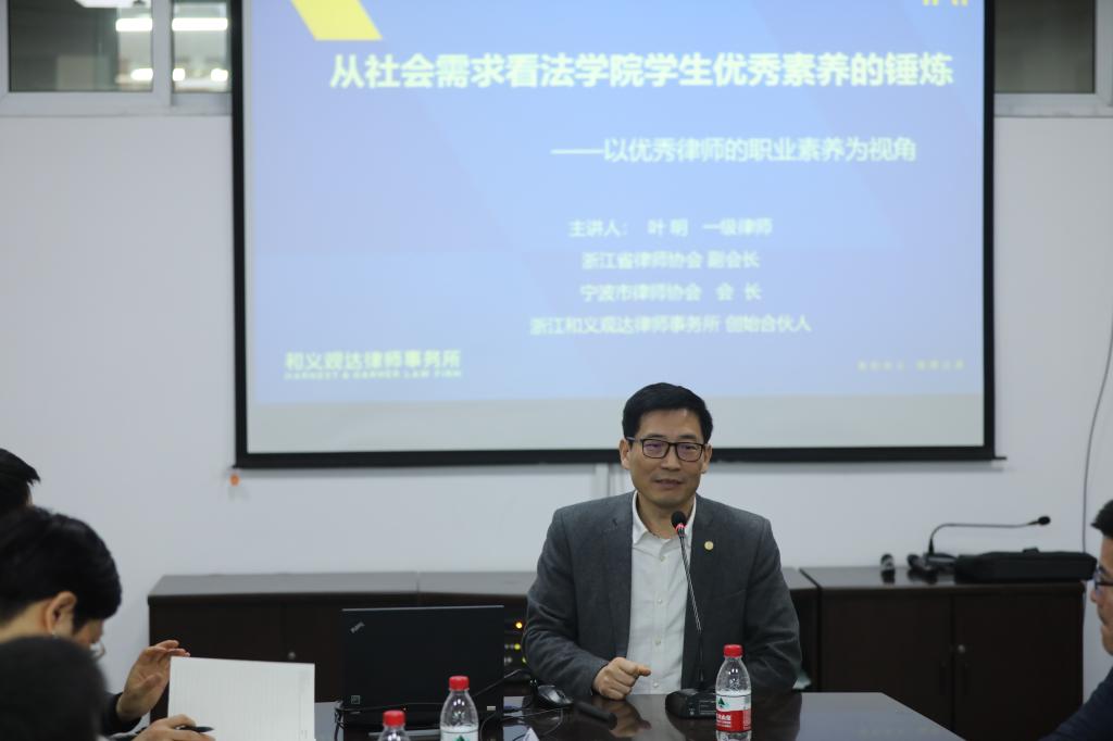 202会议室顺利举办。1988级法学专业校友、浙江省律师协会副会长、宁波市律师协会会长、浙江和义观达律师事务所创始合伙人叶明、一帆视频